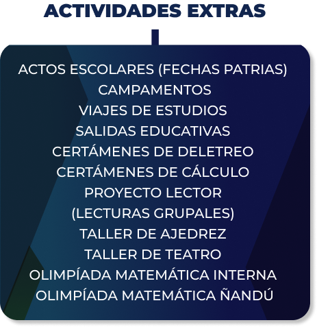 Queremos, al igual que sus familias, que nuestros alumnos desplieguen capacidades que les permitan enfrentarse a diversas problemáticas. En el nivel primario en sus extensos seis años de duración y en compañía de nuestra cultura y valores educativos (Calidad de Enseñanza, Contención y Disciplina) queremos nutrir y sentar cimientos sólidos en nuestros alumnos.